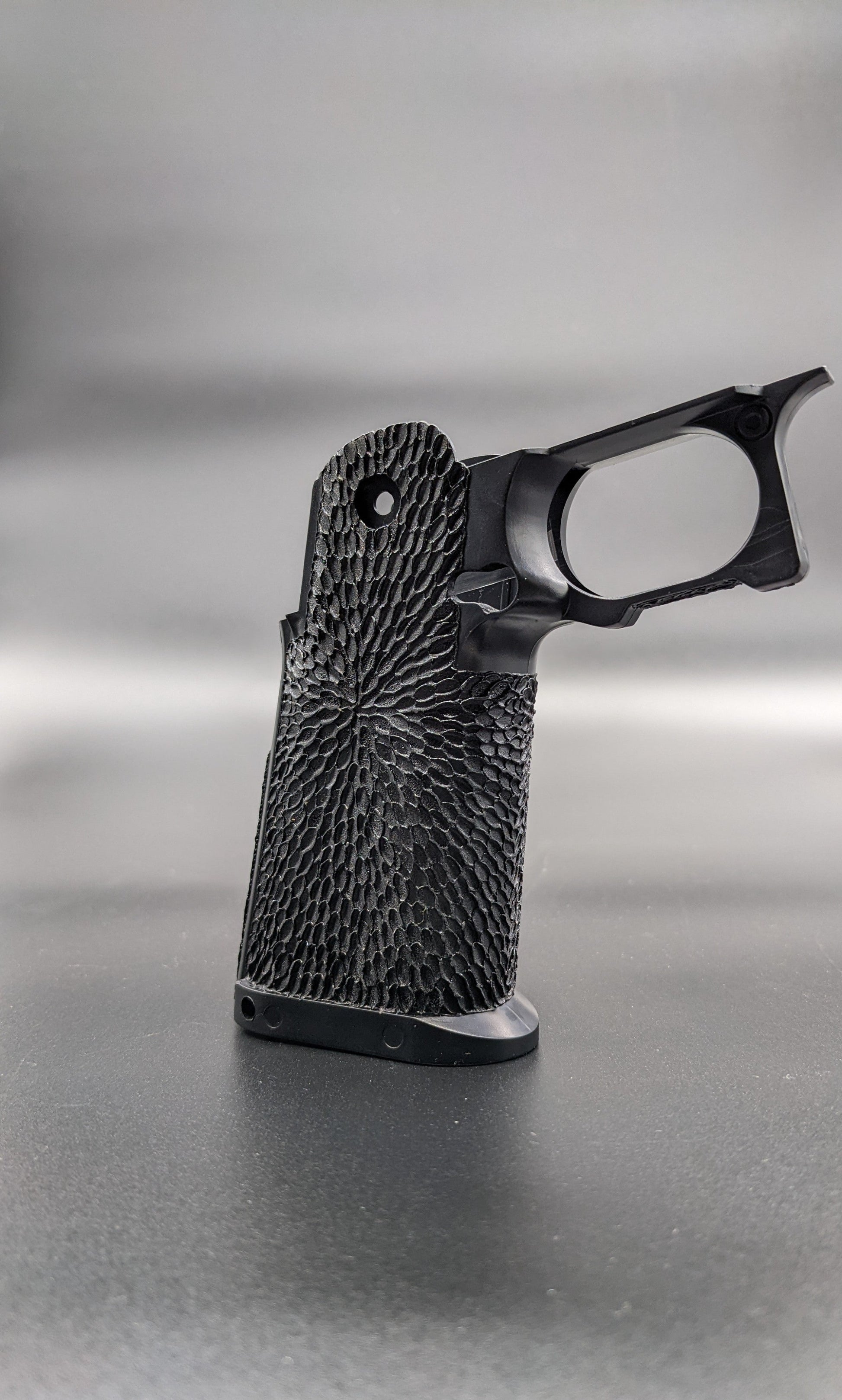 Custom Stippling on a Cow Cow Hi-Capa Sculptor Grip.