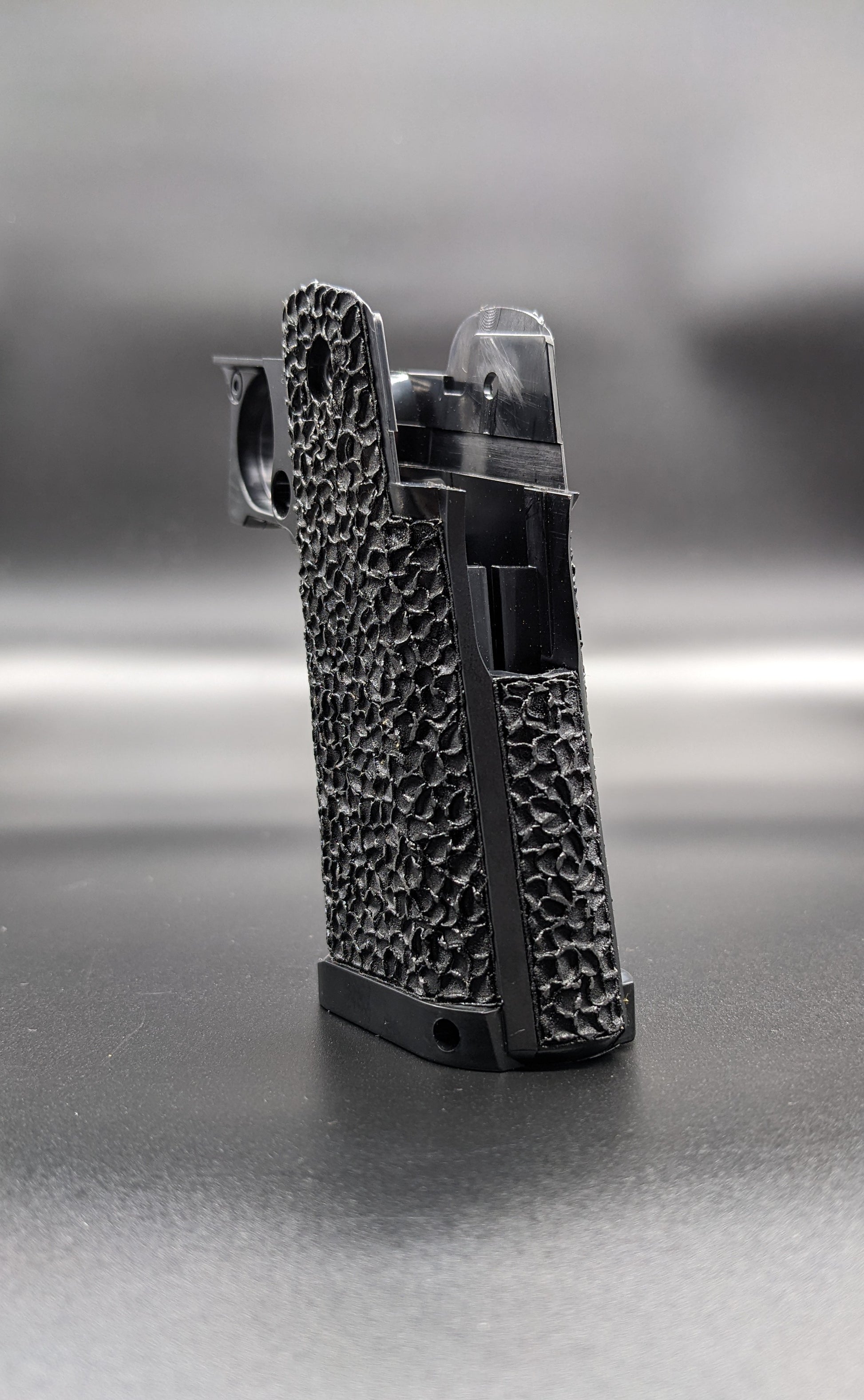 Custom Stippling on a Cow Cow Hi-Capa Sculptor Grip.